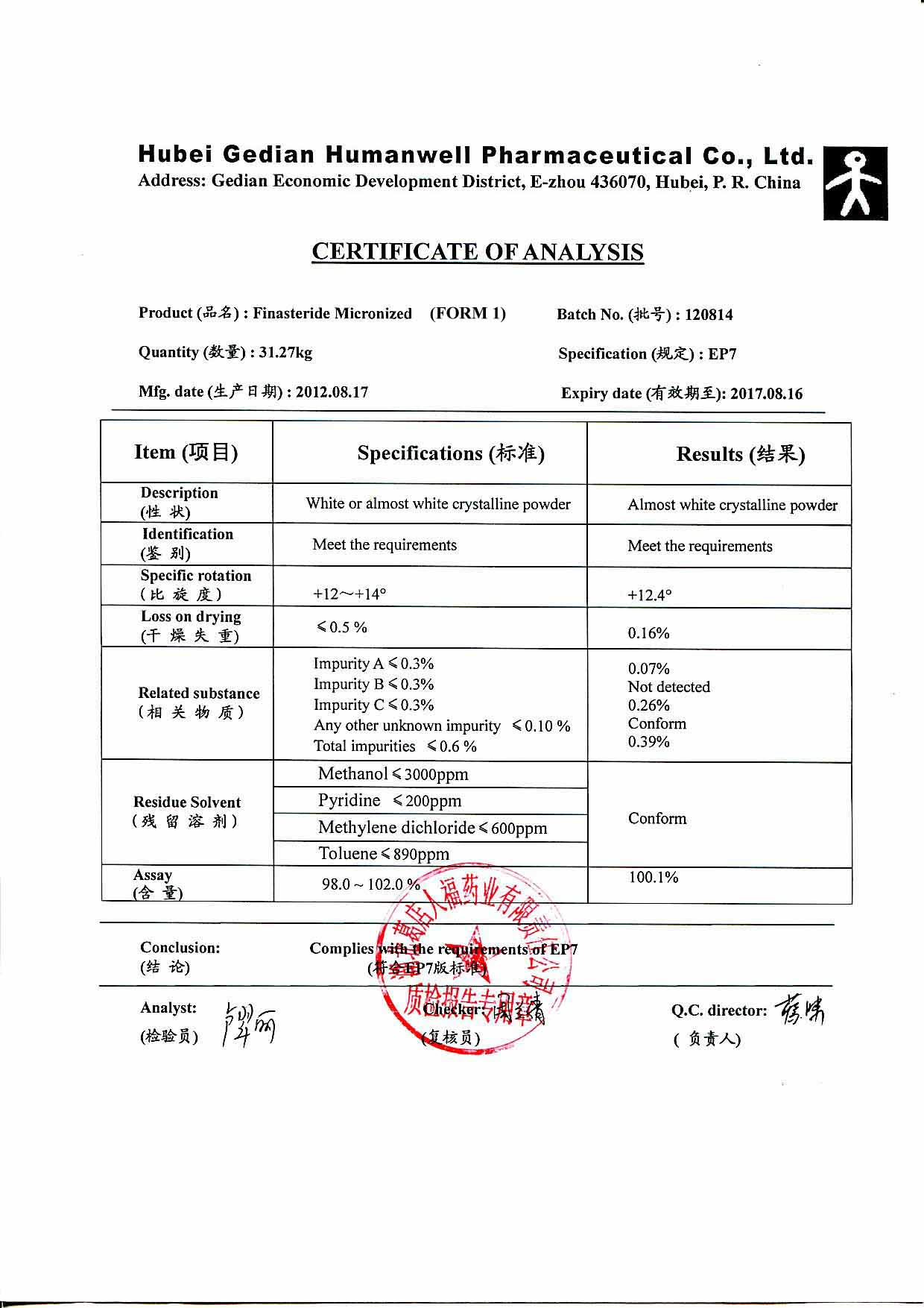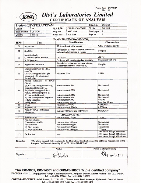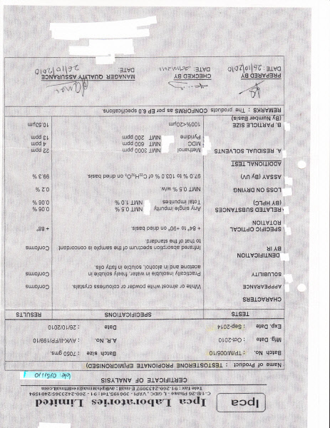 CERTIFICADOS ANALISIS ORIGINALES FABRICANTES/